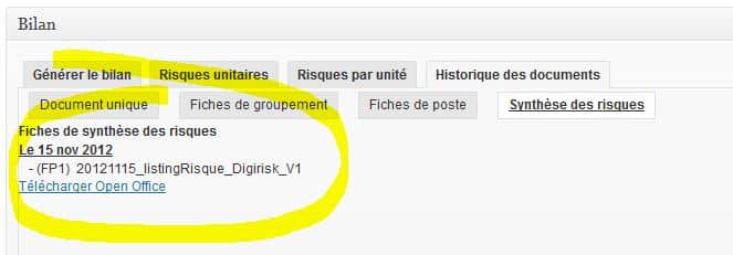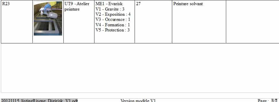Un tableau de synthèse au format Writer (l’équivalent de Word sur la suites open office) avec les photos, les risques associés, les cotations et les actions correctives. Il a l’avantage de pouvoir être copié coller directement dans Calc (l’équivalent d’Excel sur la suite open office)